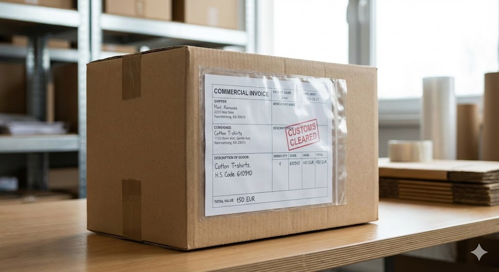 To oficjalny dowód zakupu dla zagranicznego urzędu celnego. Na jej podstawie celnicy w kraju docelowym wyliczają kwotę cła oraz lokalnego podatku VAT, którą będzie musiał zapłacić odbiorca (chyba że wysyłasz na warunkach DDP – o czym innym razem). Faktura handlowa dotyczy każdej transakcji e-commerce, niezależnie od tego, czy sprzedajesz towar jako firma B2B, czy B2C. Urząd musi widzieć czarno na białym, ile zapłacono za zawartość kartonu.