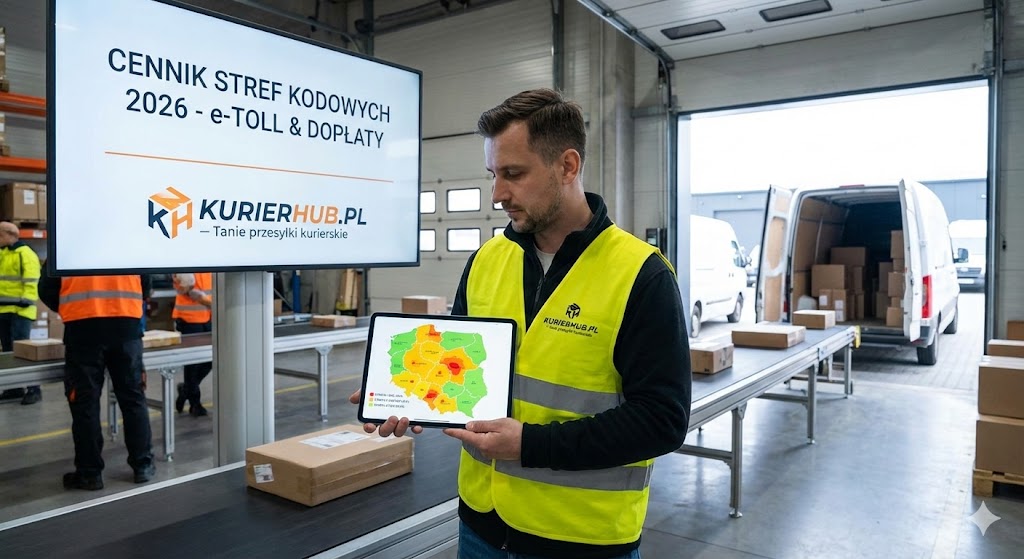 - Ile wynosi dopłata strefowa w 2026 roku? Dla paczek standardowych jest to zazwyczaj 15-25 PLN netto, dla palet kwoty te zaczynają się od 40 PLN netto.